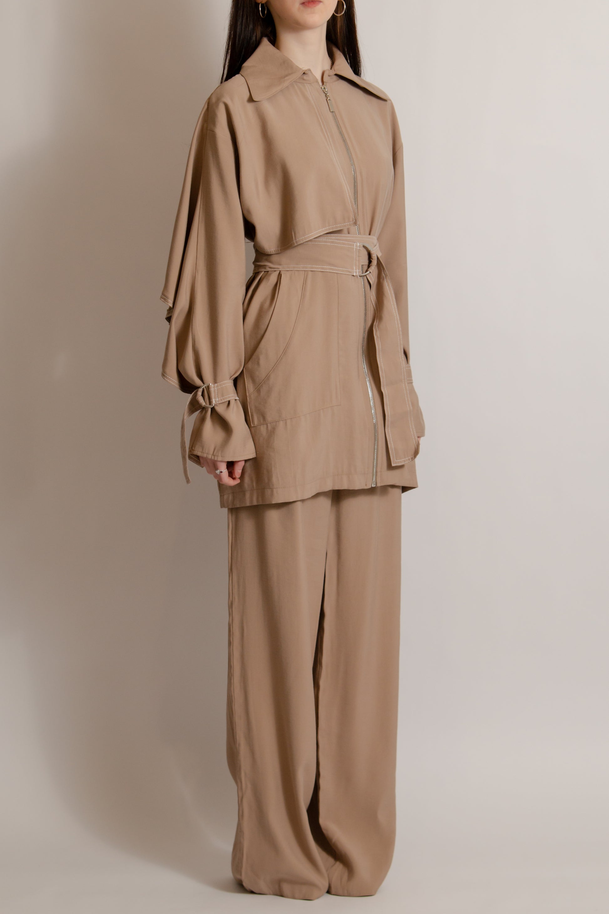 This co-ord set in an elegant nude color features a convenient zipper. Perfect for everyday wear or dressy occasions. Versatile and stylish, this set is sure to elevate your wardrobe.