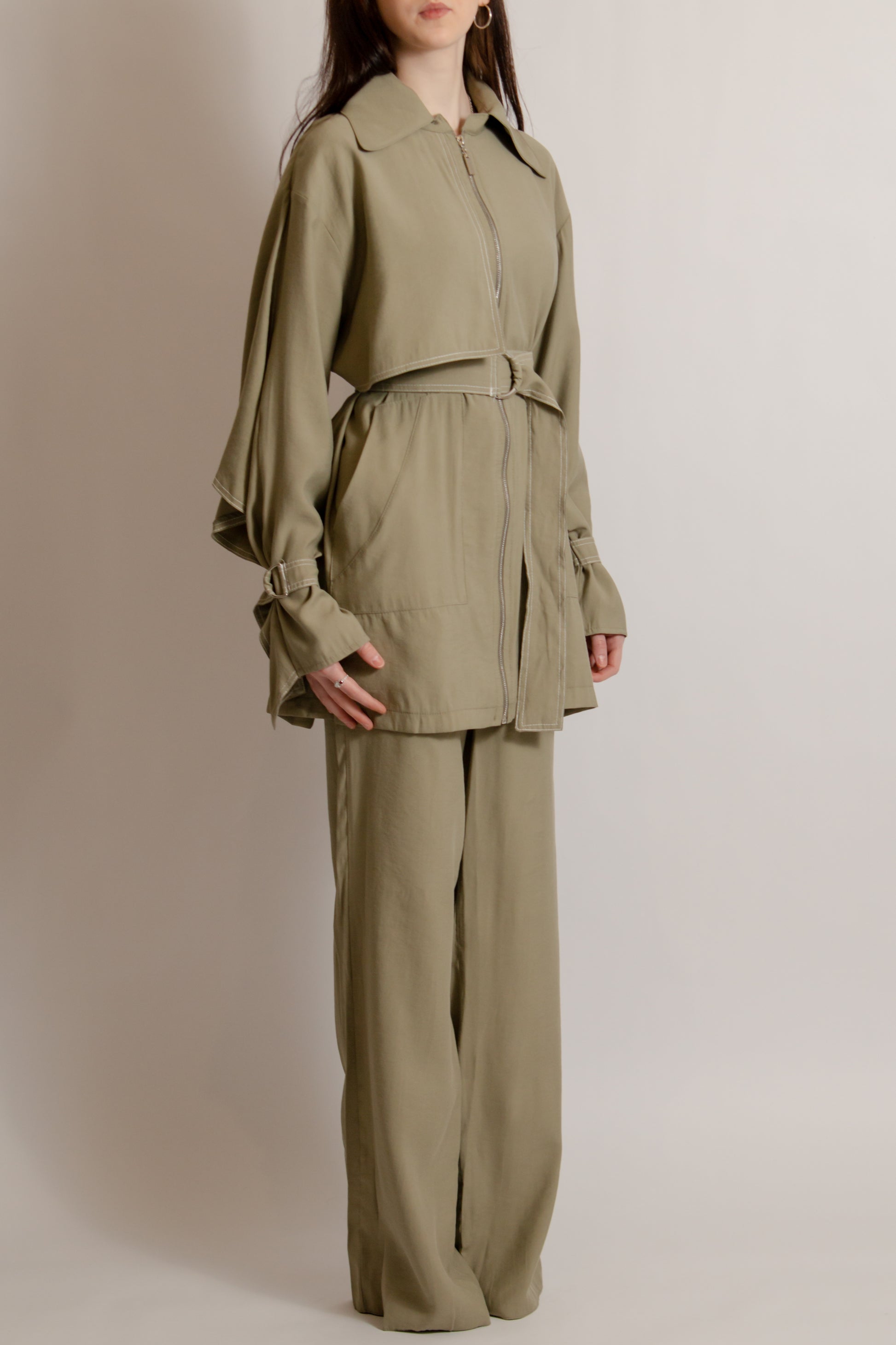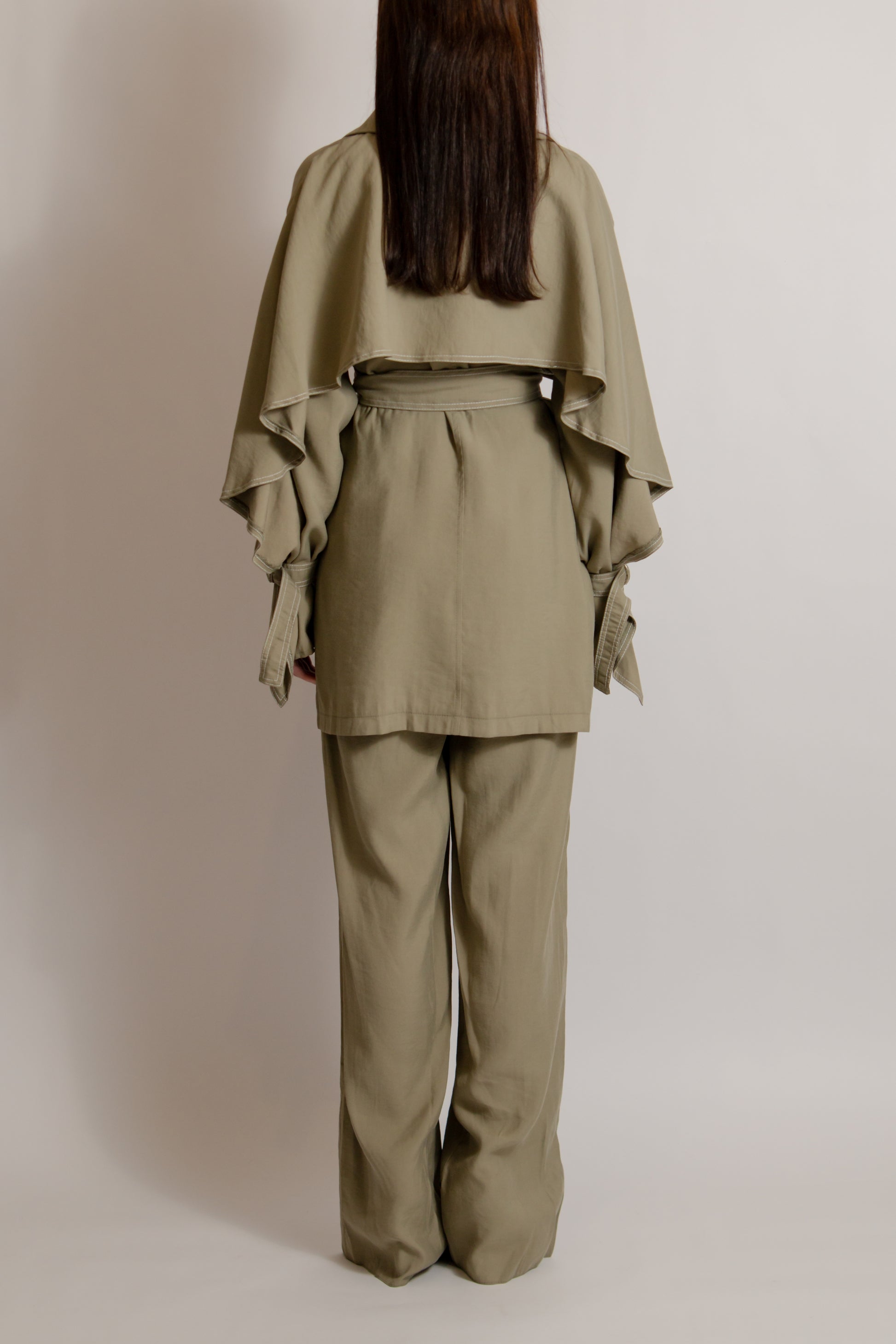 Discover the perfect balance of style and comfort with our Co-ord set in sage green. This set includes a matching cape for a touch of sophistication and versatility. Made with high-quality fabric, this set is perfect for any occasion. Elevate your wardrobe with this must-have ensemble.