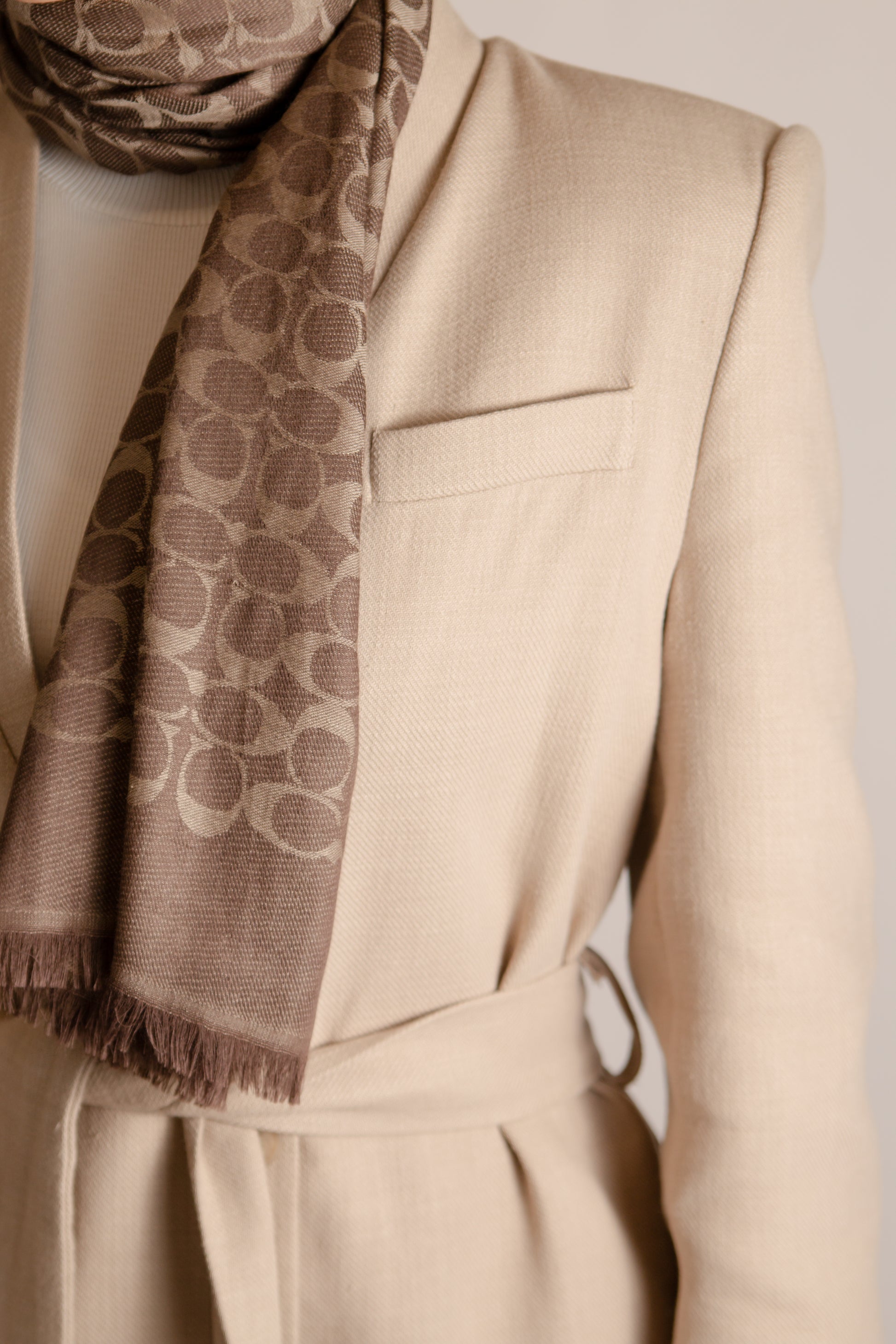 This cotton blazer with belt is designed with 100% cotton material, providing a breathable and comfortable fit. The added belt accentuates the waist and creates a polished look. Perfect for both professional and casual occasions, this blazer is a versatile addition to any wardrobe.
